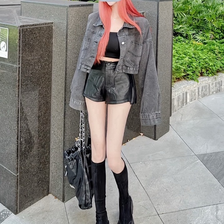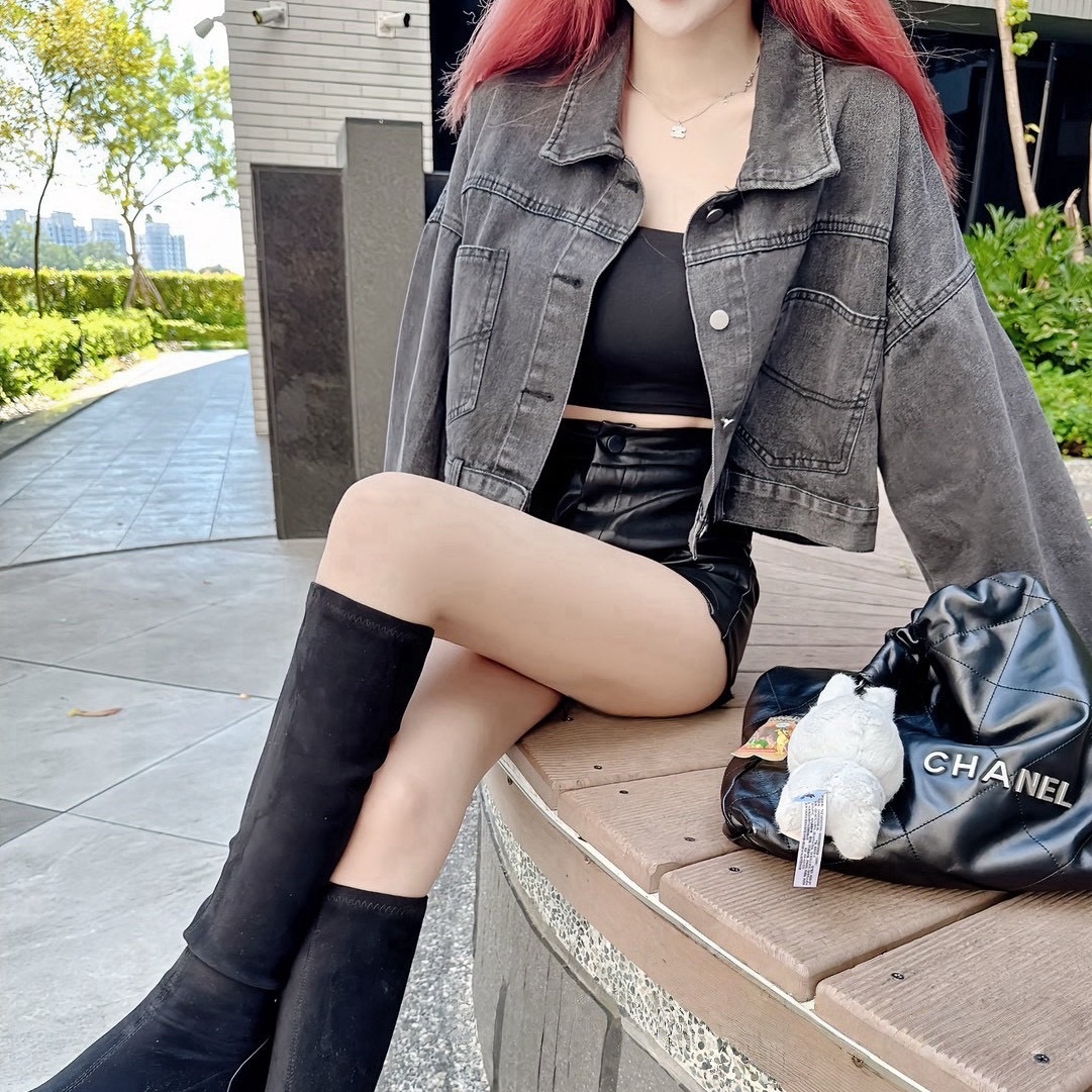 後排釦短版牛仔外套